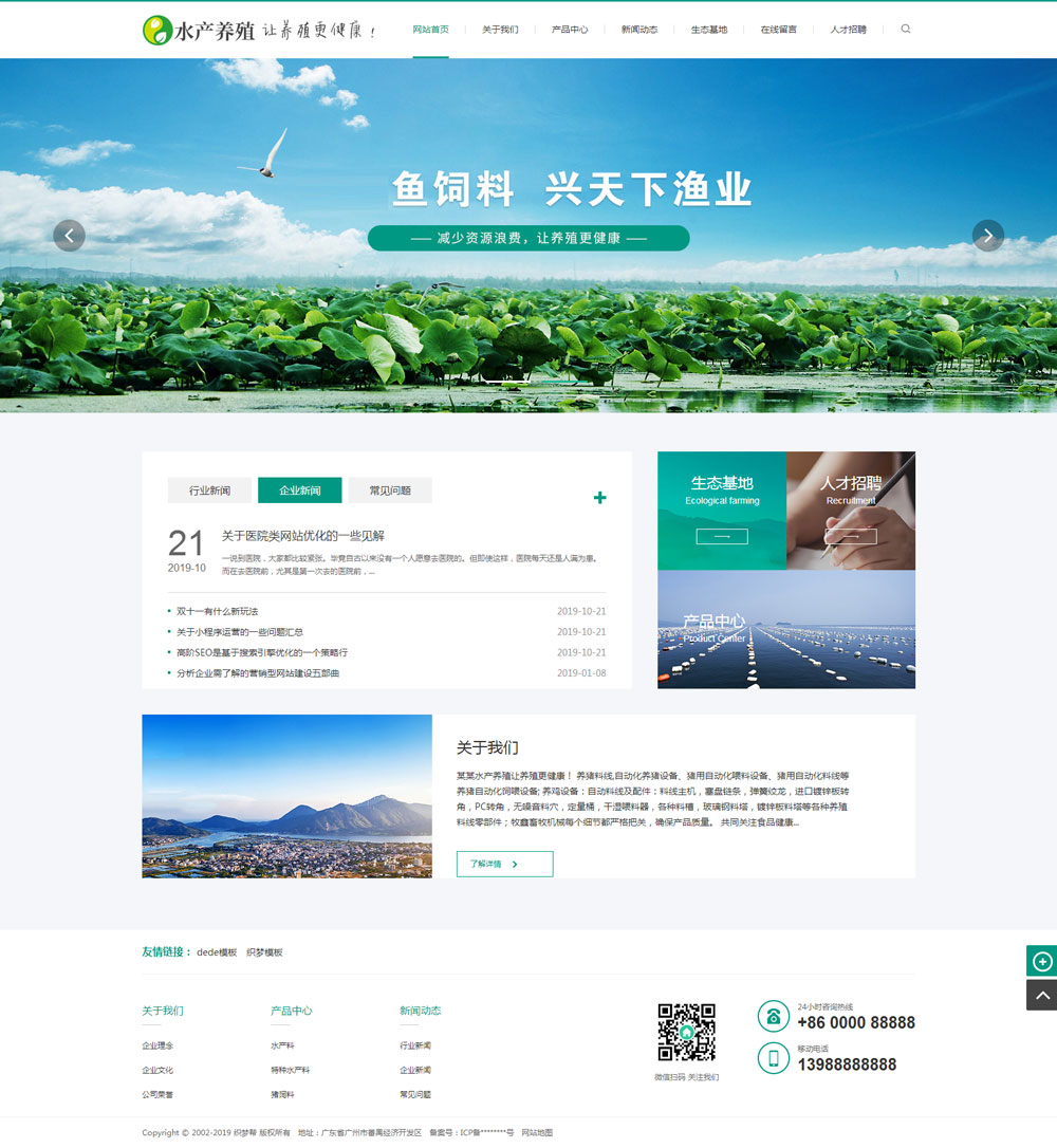 该模板属于农林牧鱼、水产、鱼饲料类企业使用,自带最新的手机移动端,同一个后台,数据即时同步,简单适用!